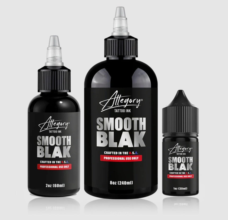 Allegory Smooth Blak is a premium black tattoo ink engineered to deliver unmatched richness, flawless consistency, and reliable performance for professional tattoo artists. Designed to produce bold lines, smooth flow, and precise application, Smooth Blak ensures confidence and control in every drop. This formula is built on the foundation of our coveted Blak ink, reimagined and updated to meet the evolving demands of modern tattooing.