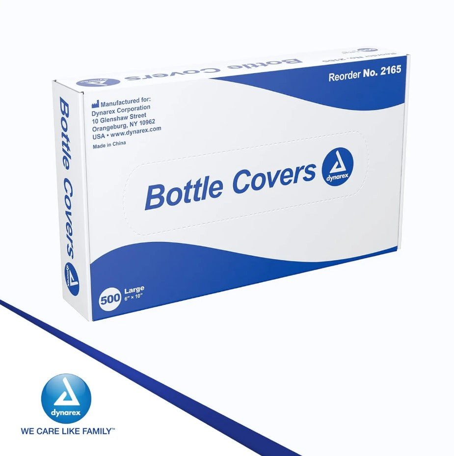 Dynarex Bottle Bags will cover the bottle preventing cross contamination. These Bottle Covers are transparent and slide easily on and off for quick application and disposal, while allowing visualization of the liquid levels in the bottle.