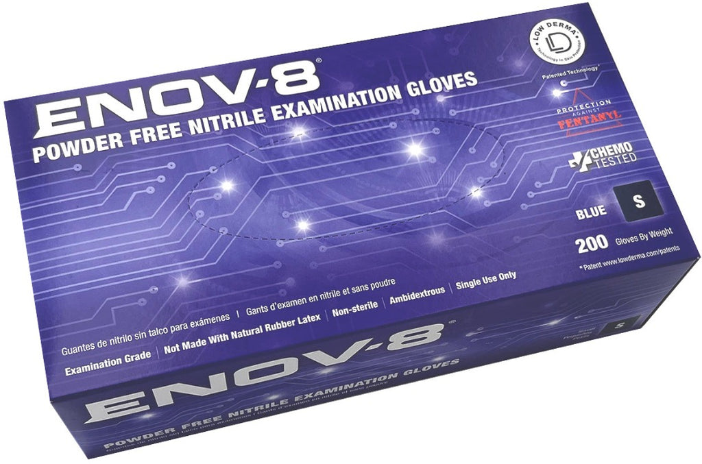 ENOV-8 Gloves with Sensitive Skin Technology not only protect the wearer from fentanyl exposure but also provide protection from sulfurs, proteins and chemical accelerators that cause allergic reactions. They are also resistant to chemotherapy drugs, chemicals, and oils. The packaging clearly displays the symbols that customers look for when choosing gloves with fentanyl and chemotherapy drug permeation protection. Tested in accordance with ASTM D6978 Standard Practice for Assessment of Resistance of Medical Gloves to Permeation by Chemotherapy Drugs and Fentanyl Citrate.