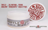 Hustle Butter Deluxe® vegan skin care and tattoo aftercare cream is made from only the finest ingredients: Shea, Mango and Aloe Butters, Coconut, Sunflower and Rice Bran Oils, Rosemary Oleoresin, Green Tea, Vitamin E Complex & Mint Arvenis Essential Oil. With Essence of Papaya and Coconut.